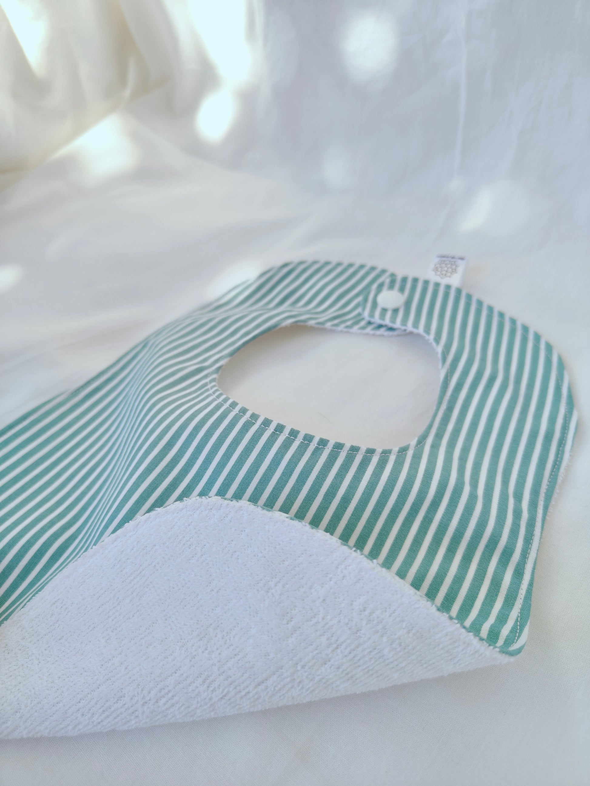 A frente em tecido de algodão é suave e delicada para a pele da criança, enquanto o verso em turco impermeável ajuda a manter a roupa seca e protegida.