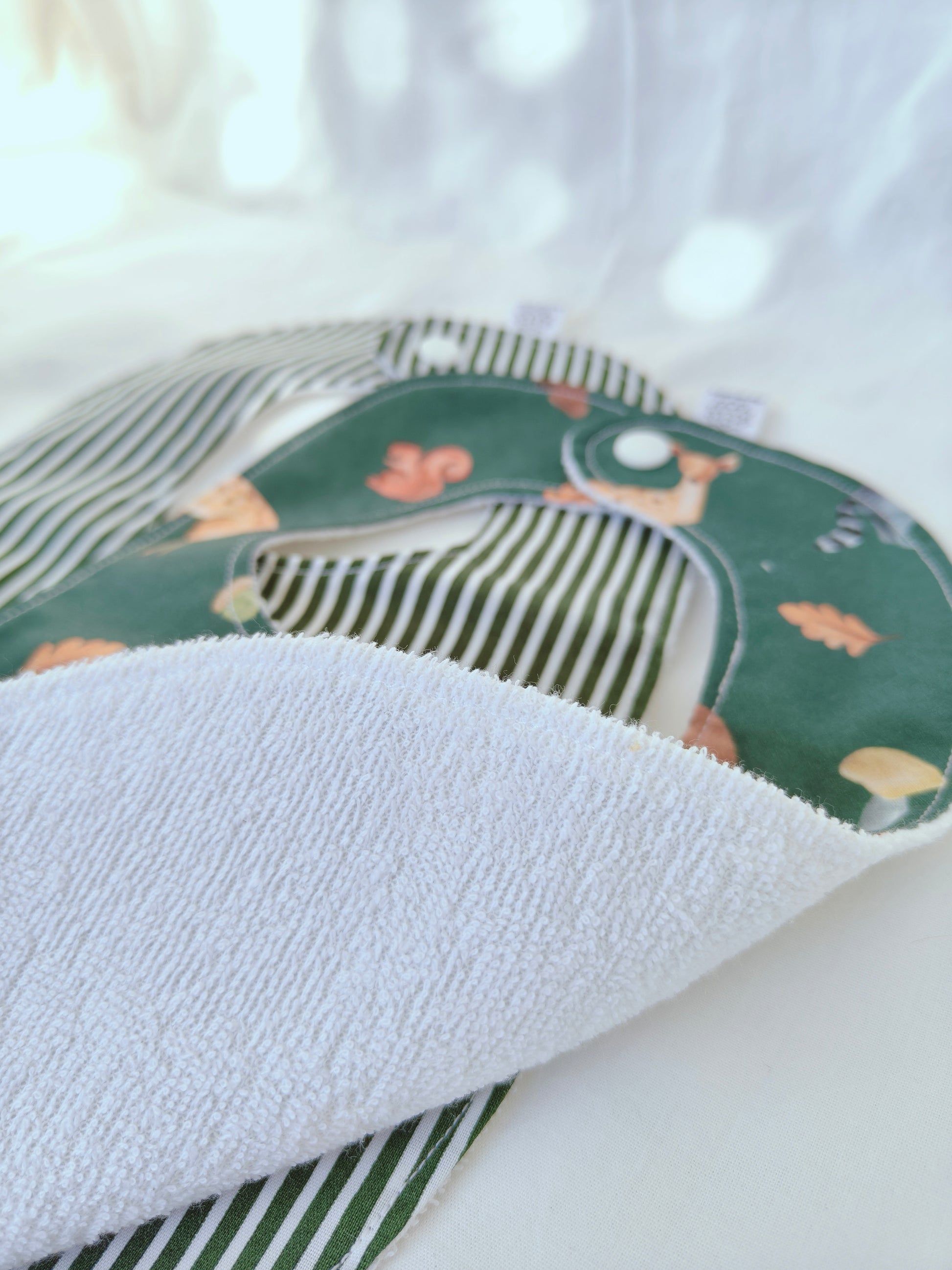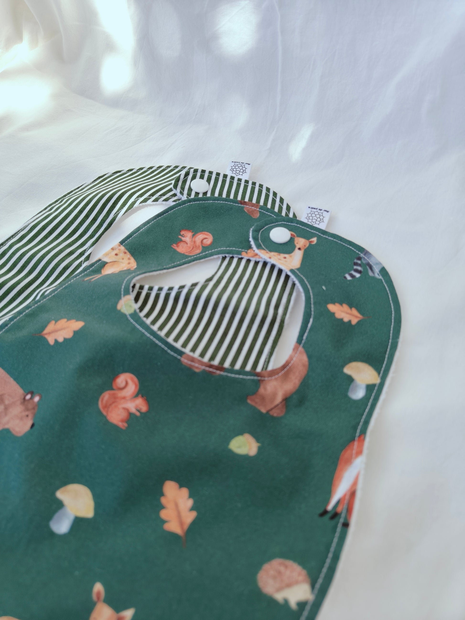 A frente em tecido de algodão é suave e delicada para a pele da criança, enquanto o verso em turco impermeável ajuda a manter a roupa seca e protegida.
