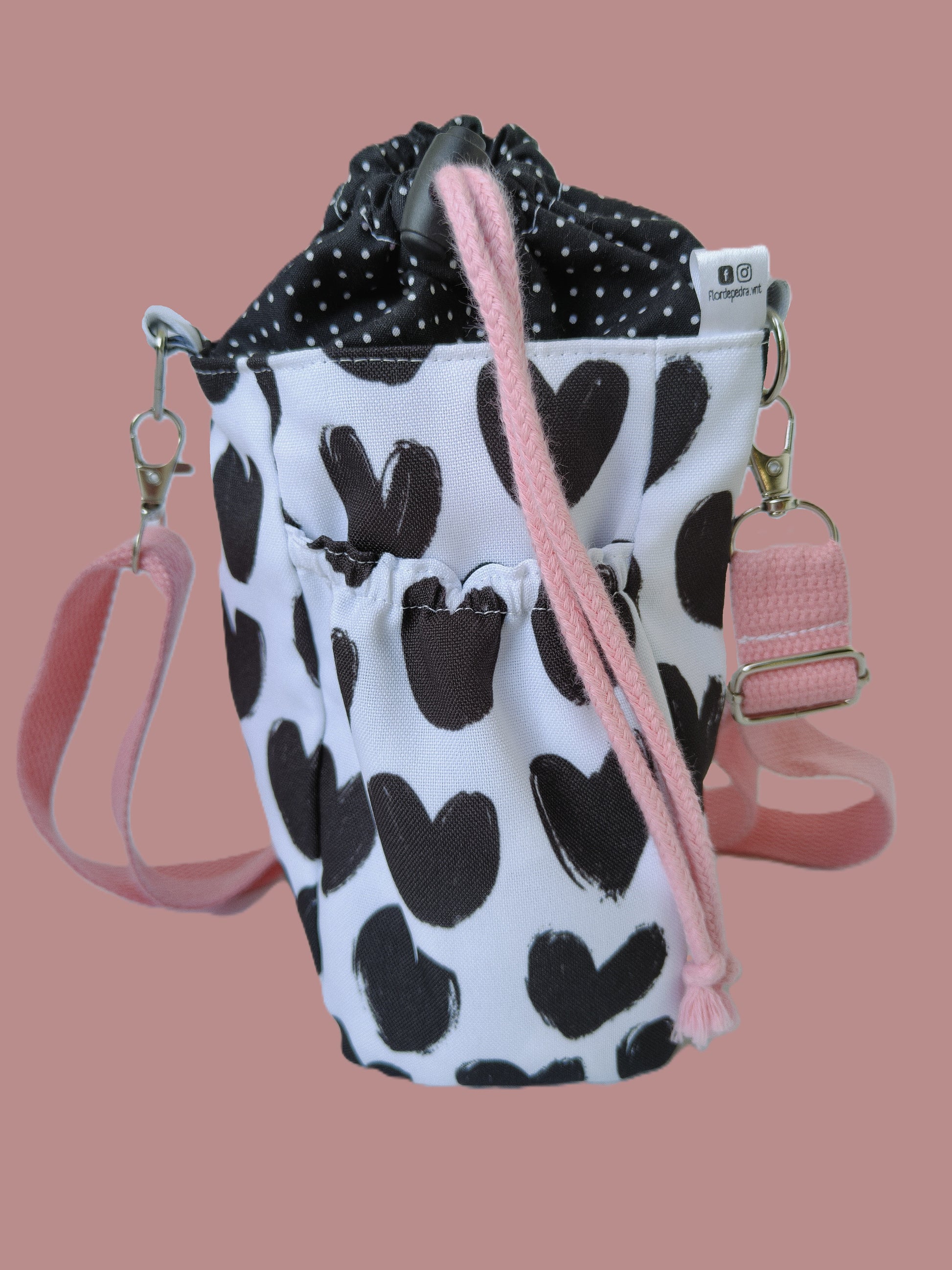 Bolsa para garrafa de água com alça ajustável, interior impermeável e fácil de abrir e fechar. Inclui um bolso exterior perfeito para o telemóvel, chaves ou uma barrita de snack. Prática e confortável, é ideal para o dia a dia, passeios ou atividades ao ar livre.