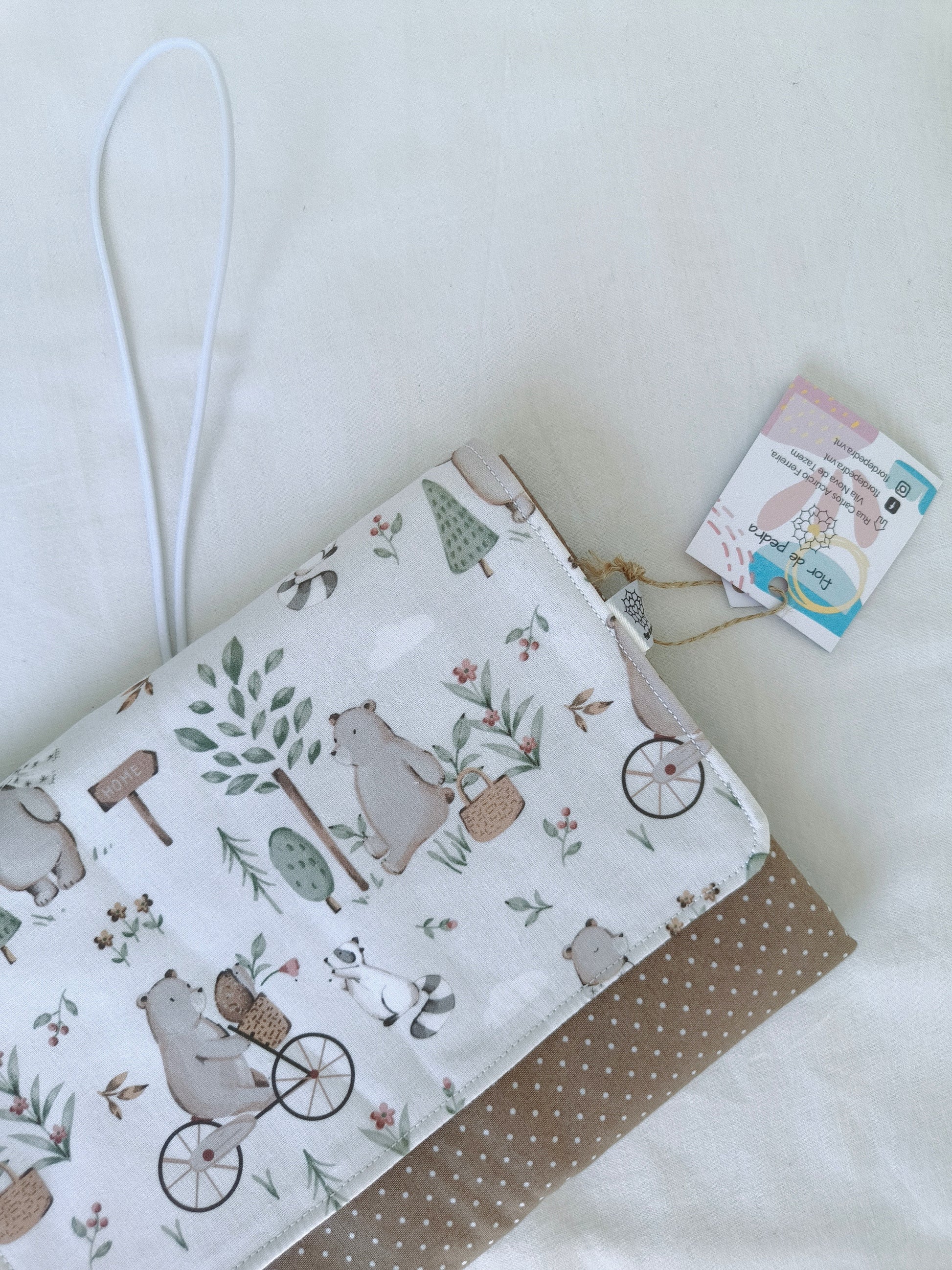 Fino e leve, o muda fraldas é perfeito para levar na mala sem ocupar espaço. O interior impermeável facilita a higienização após cada troca,