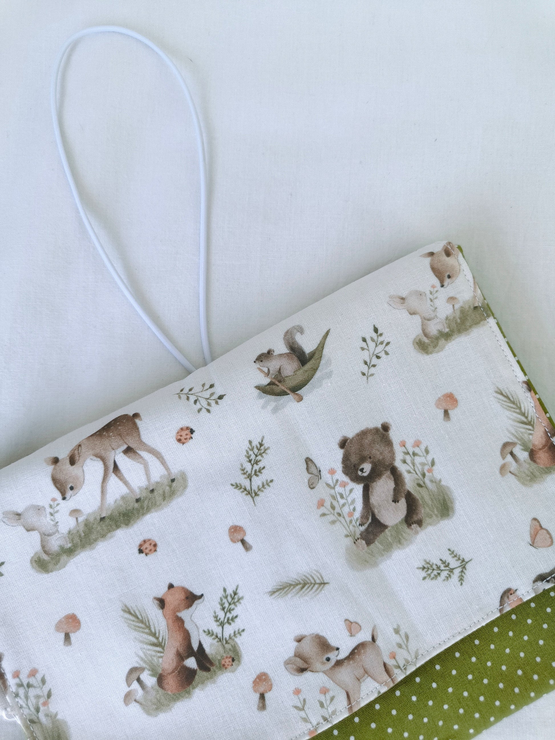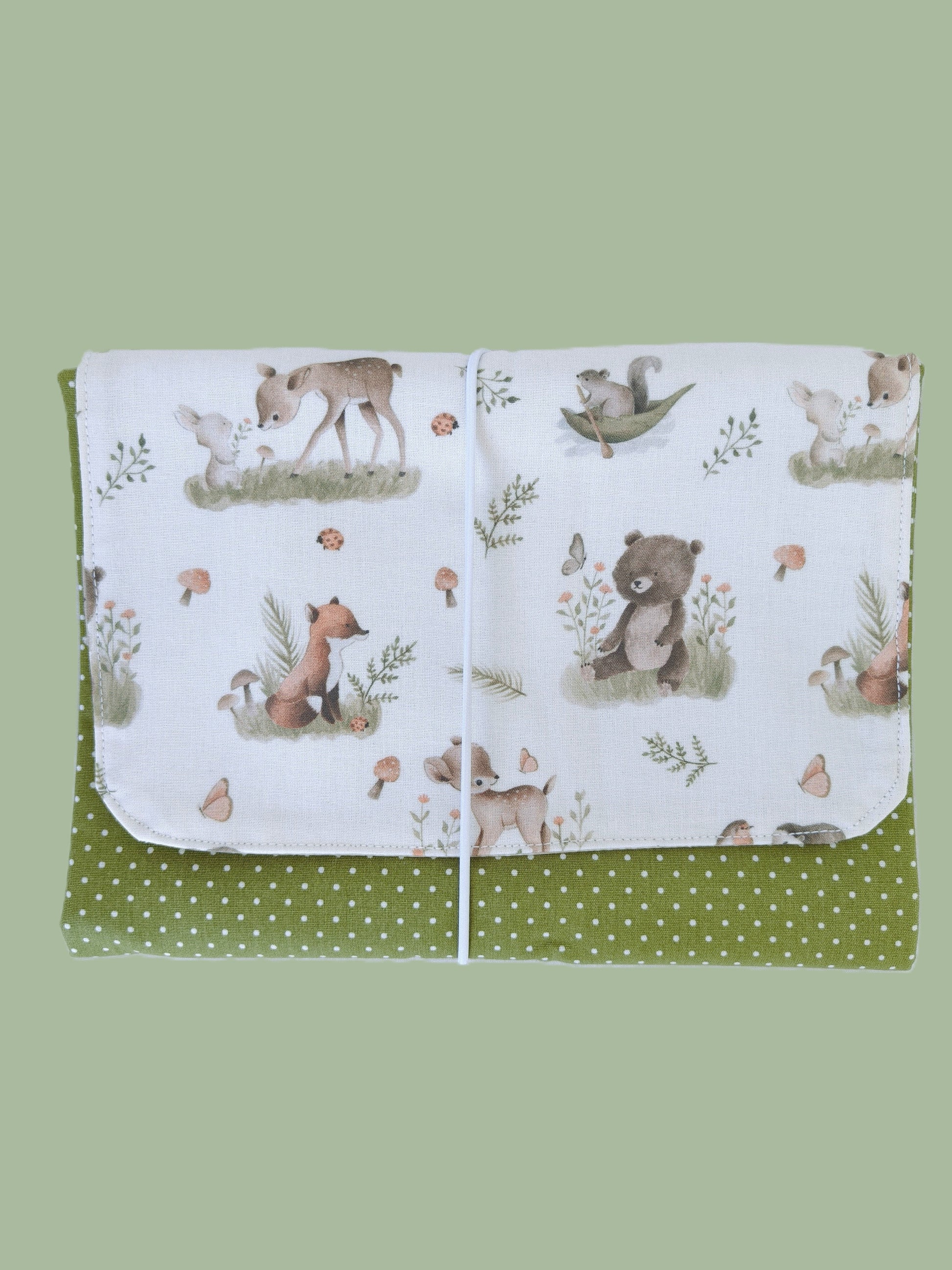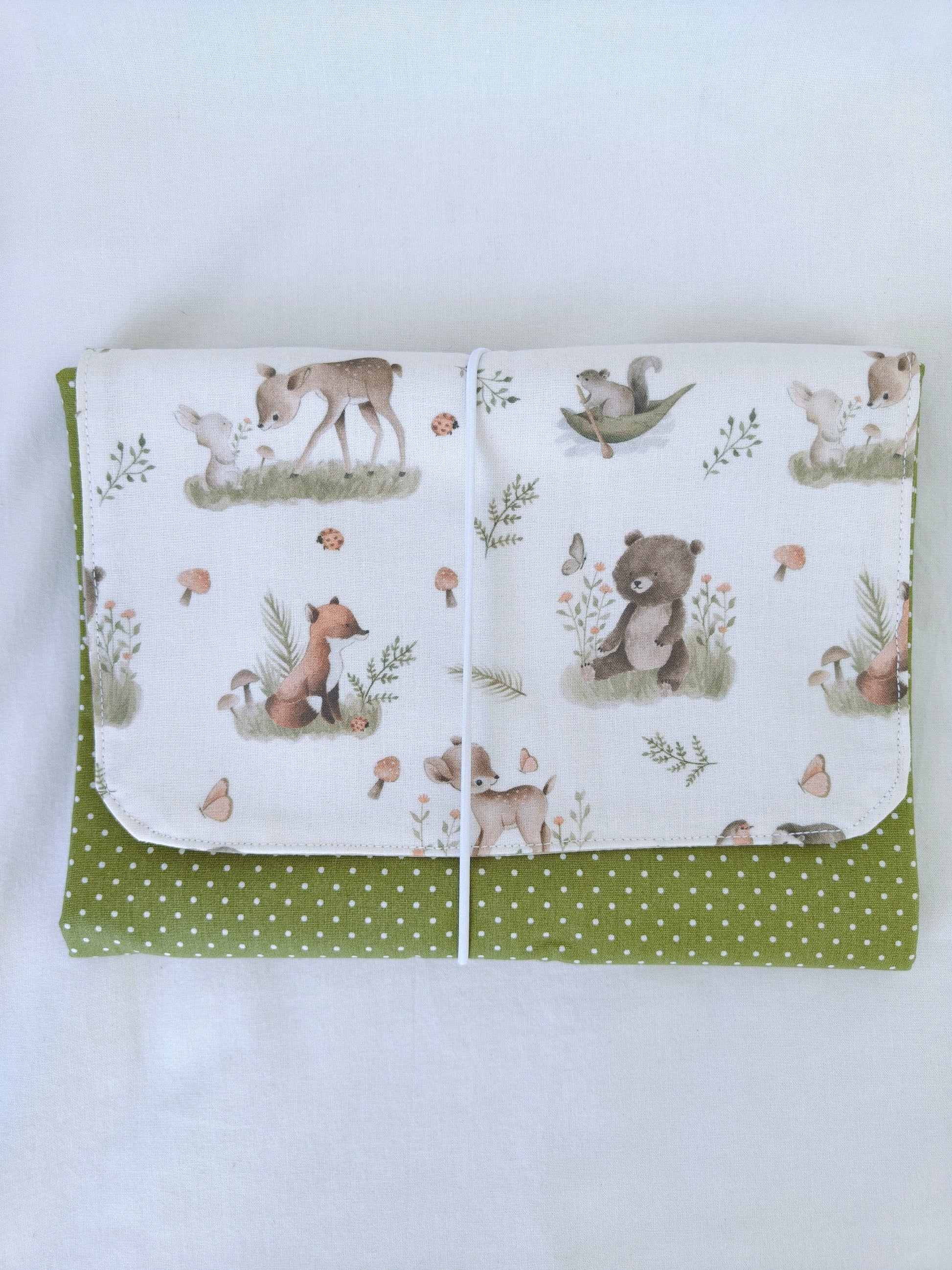 Fino e leve, o muda fraldas é perfeito para levar na mala sem ocupar espaço. O interior impermeável facilita a higienização após cada troca,