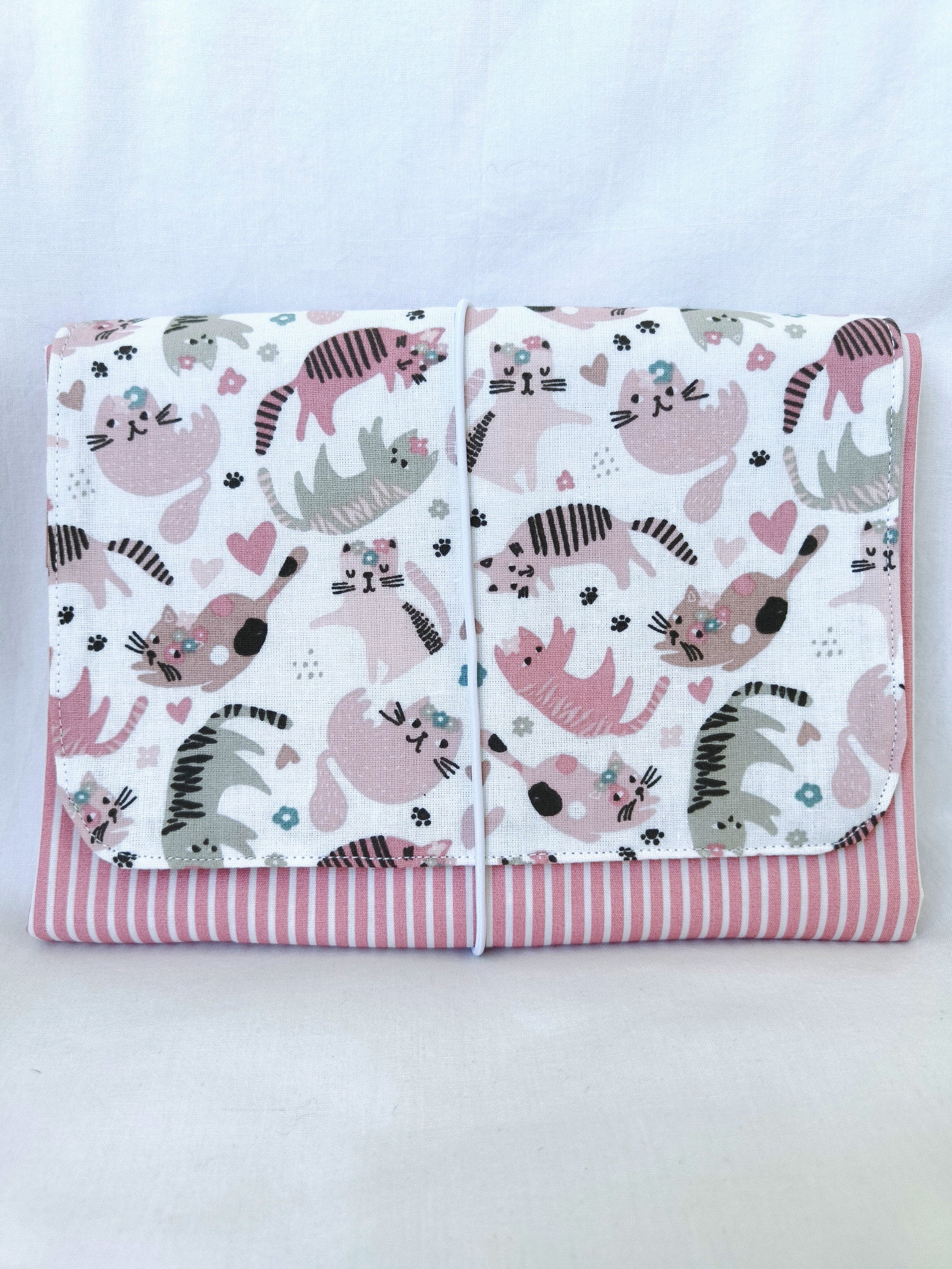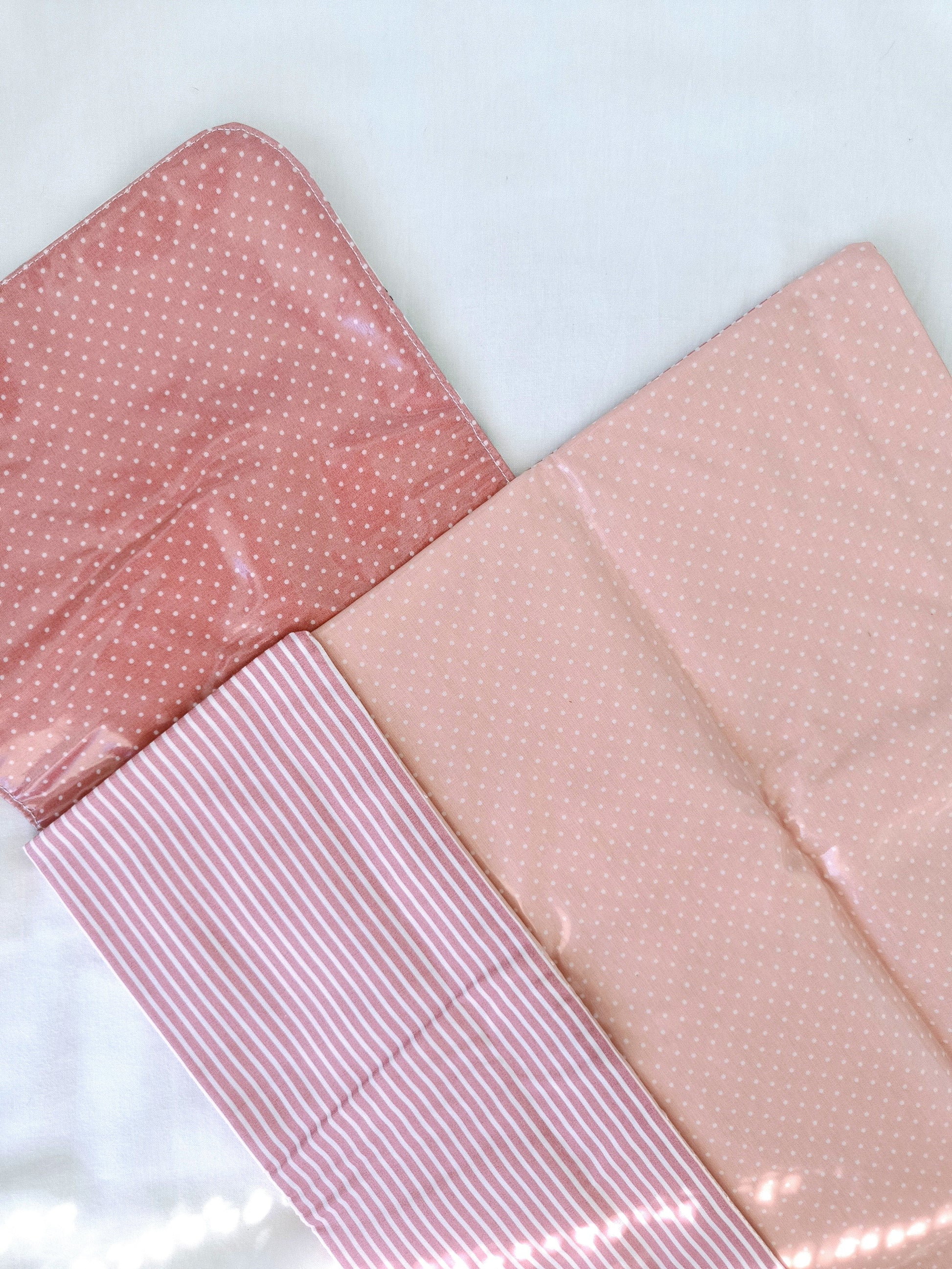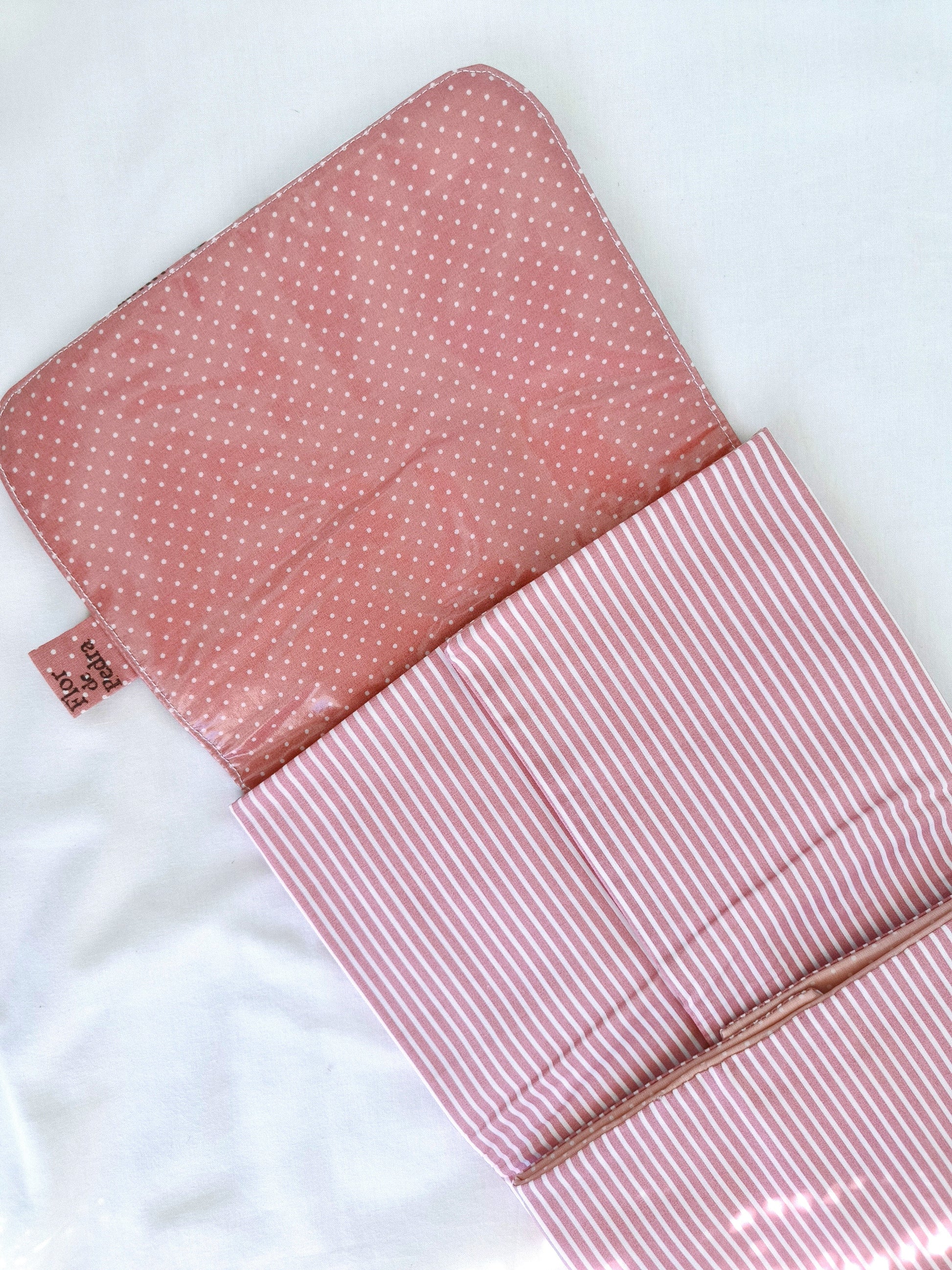 Fino e leve, o muda fraldas é perfeito para levar na mala sem ocupar espaço. O interior impermeável facilita a higienização após cada troca,