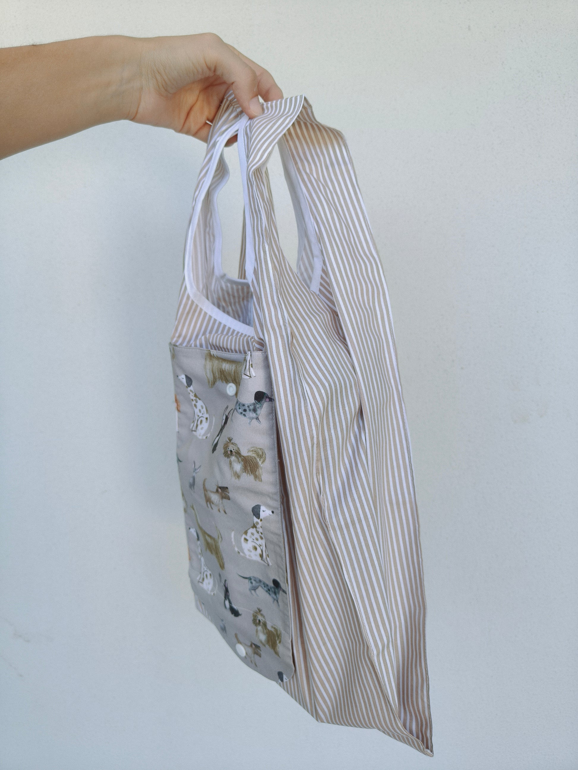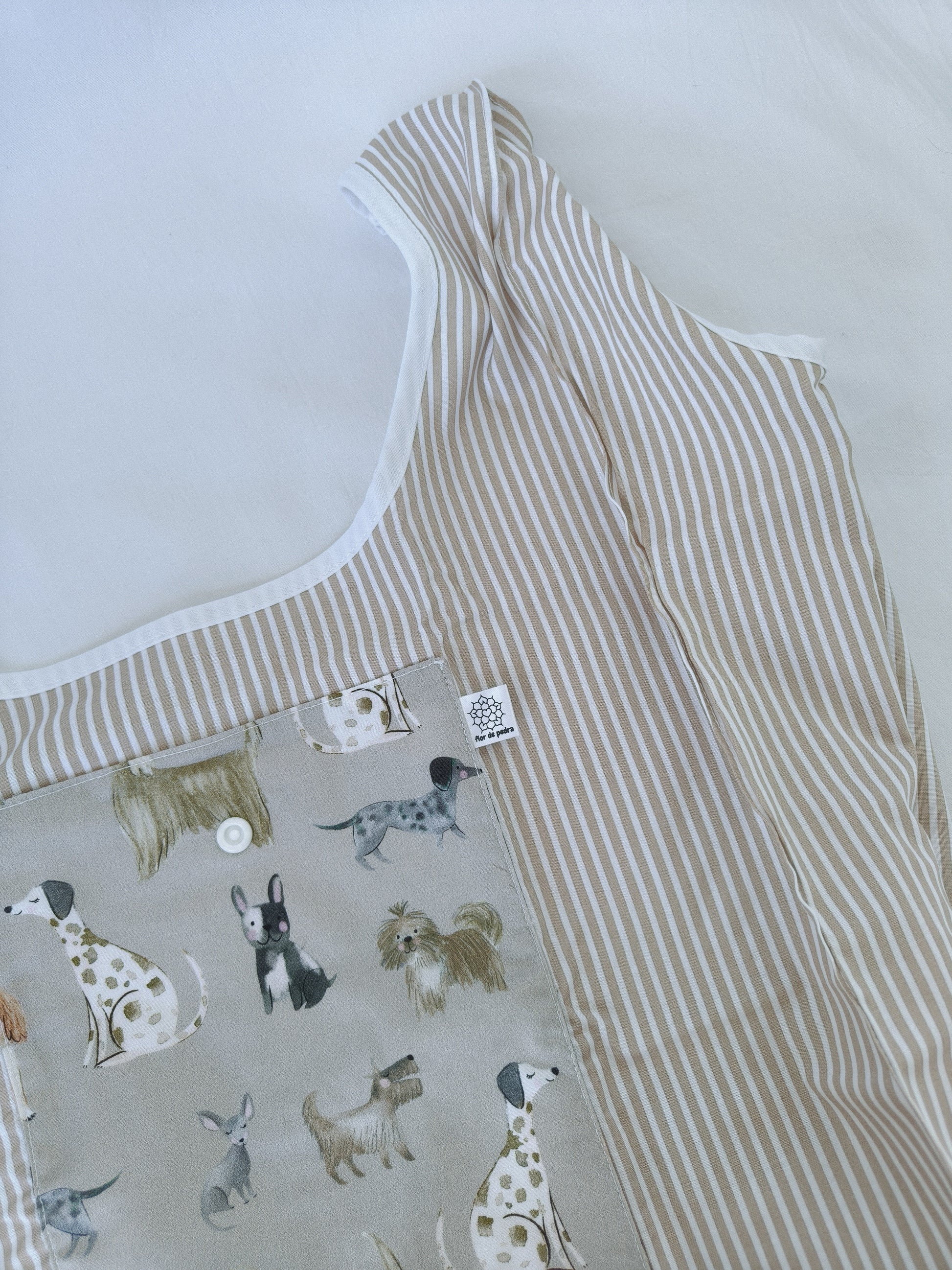 O teu saco reutilizável é feito à mão com tecido. Devido ao tecido e às múltiplas costuras é super resistente, ideal para carregar as tuas compras com segurança, mesmo nos dias mais cheios. O seu design divertido e original dá um toque de cor e personalidade às tuas idas ao supermercado.