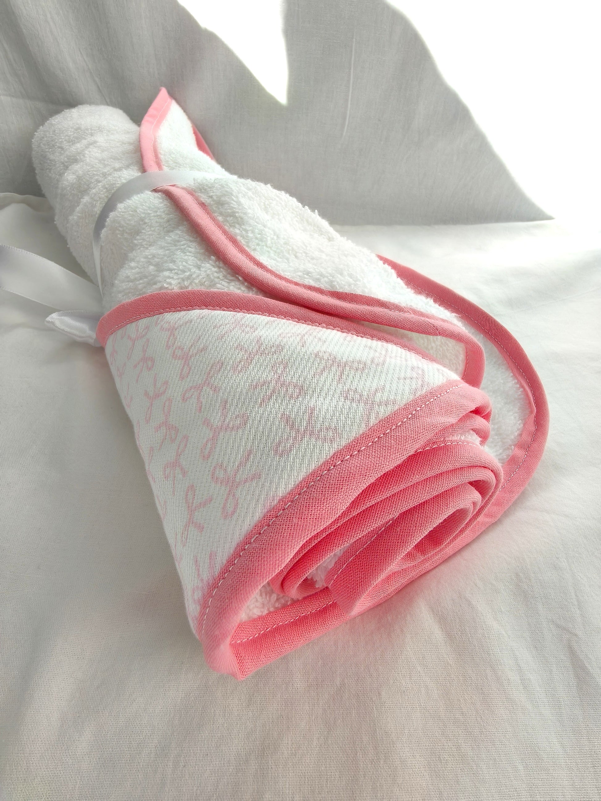 Envolve o teu bebé em conforto e suavidade com esta toalha de banho feita à mão em turco 100% algodão. O tecido é macio, absorvente e delicado na pele sensível dos mais pequeninos, proporcionando uma secagem rápida e aconchegante após o banho.