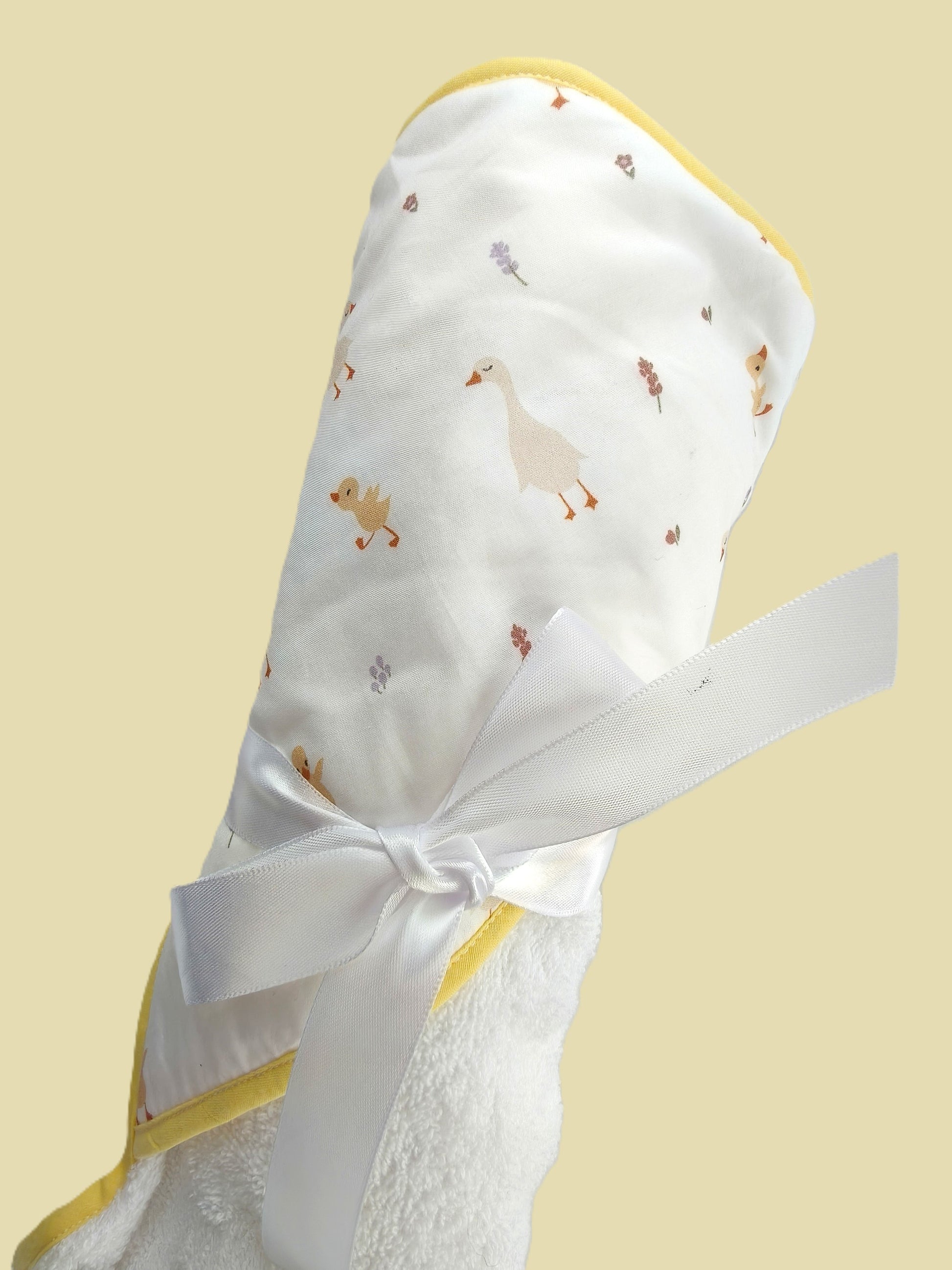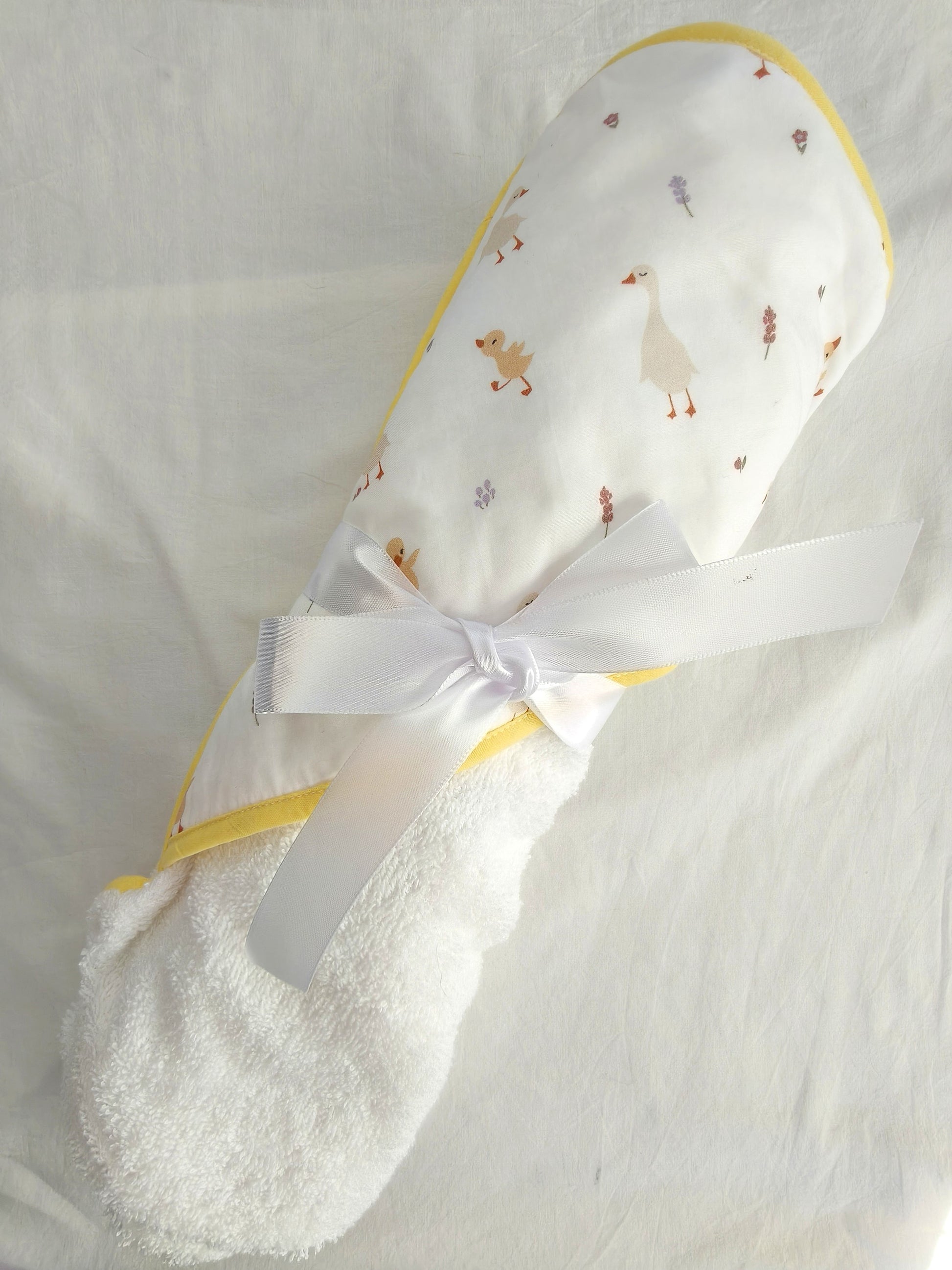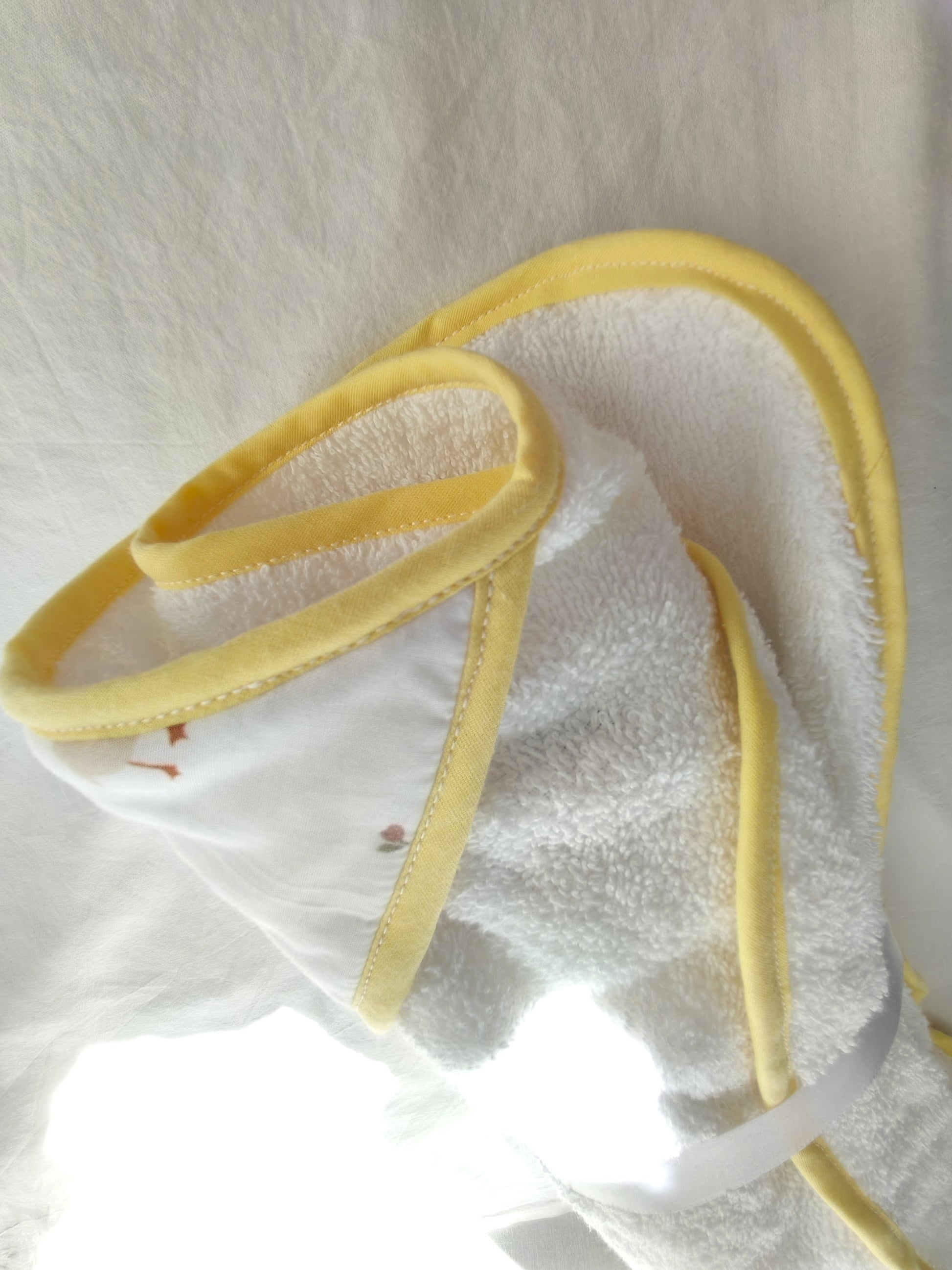 Envolve o teu bebé em conforto e suavidade com esta toalha de banho feita à mão em turco 100% algodão. O tecido é macio, absorvente e delicado na pele sensível dos mais pequeninos, proporcionando uma secagem rápida e aconchegante após o banho.